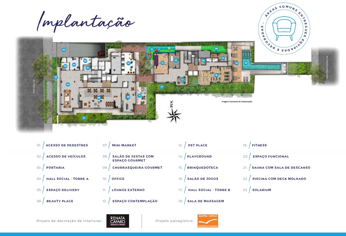 Academia Beauty Place Brinquedoteca Churrasqueira Coworking Deck Molhado Espaço Delivery Fitness Externo Hall Social Mini Mercado Pet Place Piscina Playground Redário Sala de Massagem Salão de Jogos Sauna Sauna – Descanso Solário